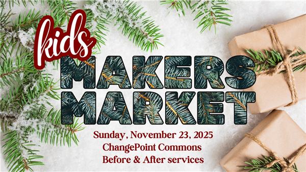 Public Online Giving Event Calendar Group Finder Opportunity Finder Private My User Account My Groups My Events My Purchase History My Giving My Contribution Statement Login anonymous Show Summary (0) Event Details Kids Makers Christmas Market 2025 Back to Calendar Support two important ministries: CPKids & the ChangePoint's Uncommon Gift recipient! ChangePoint kids, aged 5-18 years old, have worked incredibly hard to prepare booths of handmade items. They are learning the basics of building a business, while supporting the Uncommon Gift recipient. All booth registration fees and silent auction sales will be donated to the Uncommon Gift recipient. Last year, that amount was over $2000. Ministry Area: Children Ministry Activities When: Sunday, November 23, 20258:00 AM - 1:30 PM Add To Calendar Where: Raspberry Campus6689 Changepoint DrAnchorage, AK 99518-1578 Map This Meeting Instructions: Be prepared when you walk into ChangePoint's Main Entrance on Sunday, November 23. 2025. The Kids Makers Christmas Market will be setup with booths of kids selling handmade items. They will keep their proceeds, but all booth registration fees and silent auction proceeds will be donated to ChangePoint's 2025 Uncommon Gift Recipient. Come and worship with us as always, but be prepared to support these two awesome ministries as well. Contact: Makihele, Vanessa907-646-4811